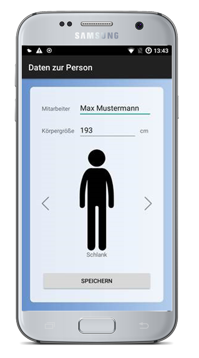 Wir brauchen zu Beginn nur den Namen die Größe und die Körperform Ihre Mitarbeiters.