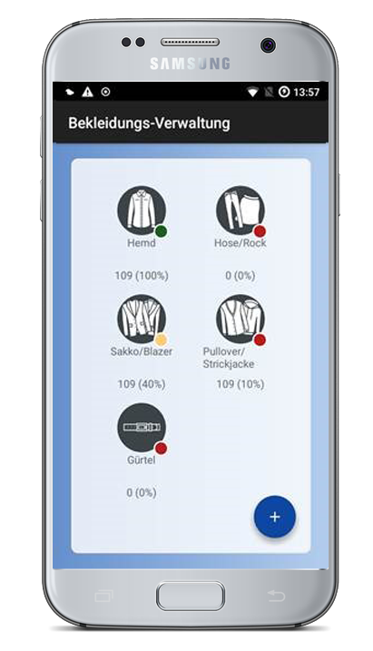 Nach der Eingabe Ihrer bestehenden Kleidungsstücke erhalten Sie direkt Ihre Ergebnisse der Größenermittlung und können diese aus der App an Ihren Vorgesetzten versenden. Anhand eines Ampelsystems sehen Sie auch welche Kleidungsstücke noch erfasst werden sollten, damit ein besseres Ergebnis erzielt werden kann.